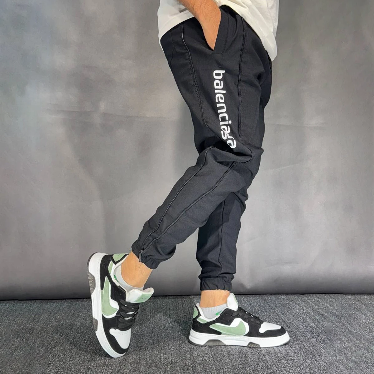 شلوار مردانه مشکی بالنسیاگا ۳ نوار مدل تمام زیپ
