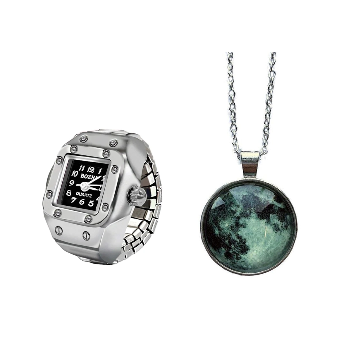 پکیج ساعت انگشتری استیلگردنبند ماه شب تاب