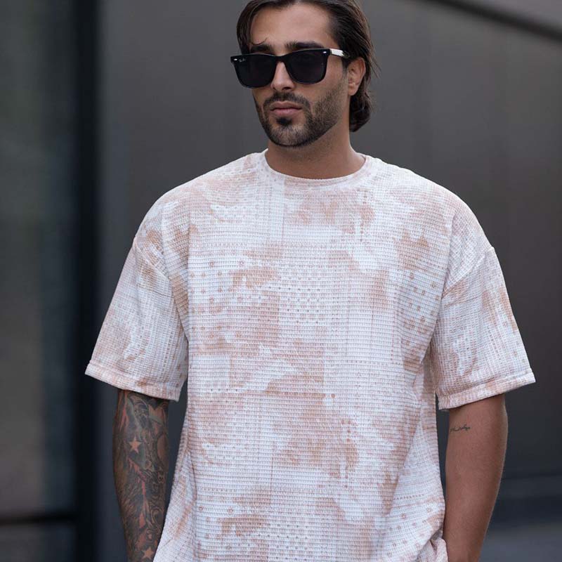 تیشرت مراکشی چاپی کرم مردانه مدل Ramin