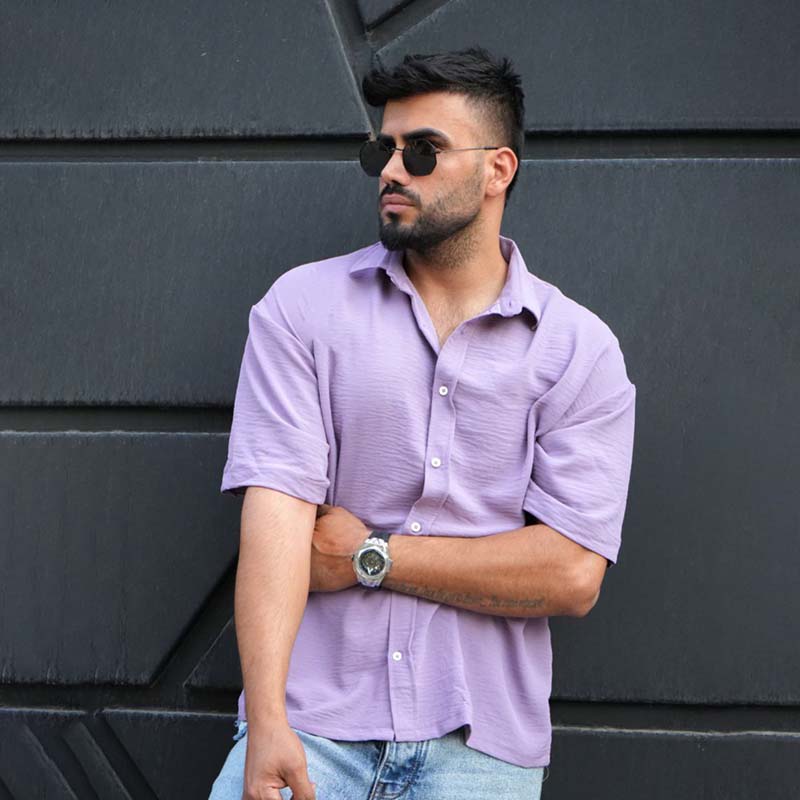پیراهن آستین کوتاه بنفش مردانه مدل باکسی
