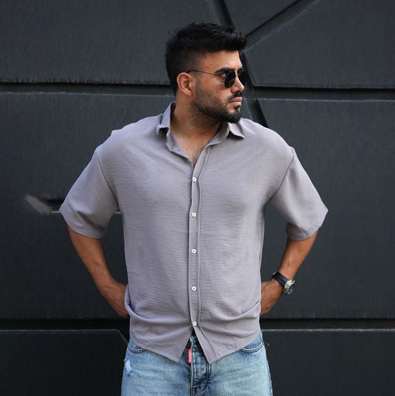 پیراهن آستین کوتاه طوسی مردانه مدل باکسی